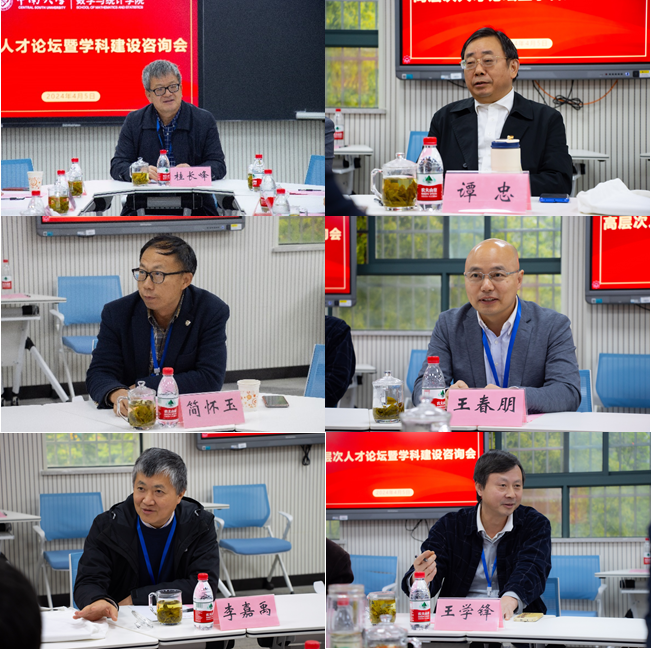 专家咨询环节,国家特聘专家、澳门大学数学系系主任桂长峰教授,清华大学简怀玉教授,国家杰青、中国科学技术大学李嘉禹教授,国家级教学名师、厦门大学深圳研究院经理谭忠教授,国家杰青、吉林大学数公司党委书记王春朋教授,国家特聘专家、香港中文大学(深圳)研究生院经理王学锋教授,上海交通大学研究生院经理王亚光教授,国家级教学名师、南京大学杨孝平教授,教育部教指委委员、广东省数学会理事长姚正安教授,国家杰青、华南理工大学数学院学术经理朱长江教授等专家纷纷给出了自己的建议。